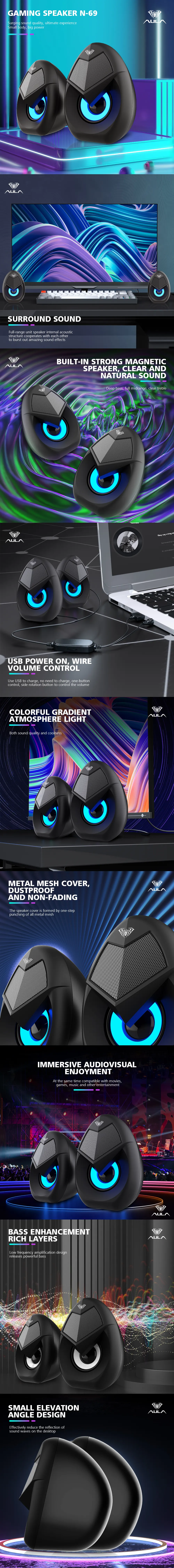 AULA - AULA Wind N-69 Gaming RGB 2.0 Desktop Speaker