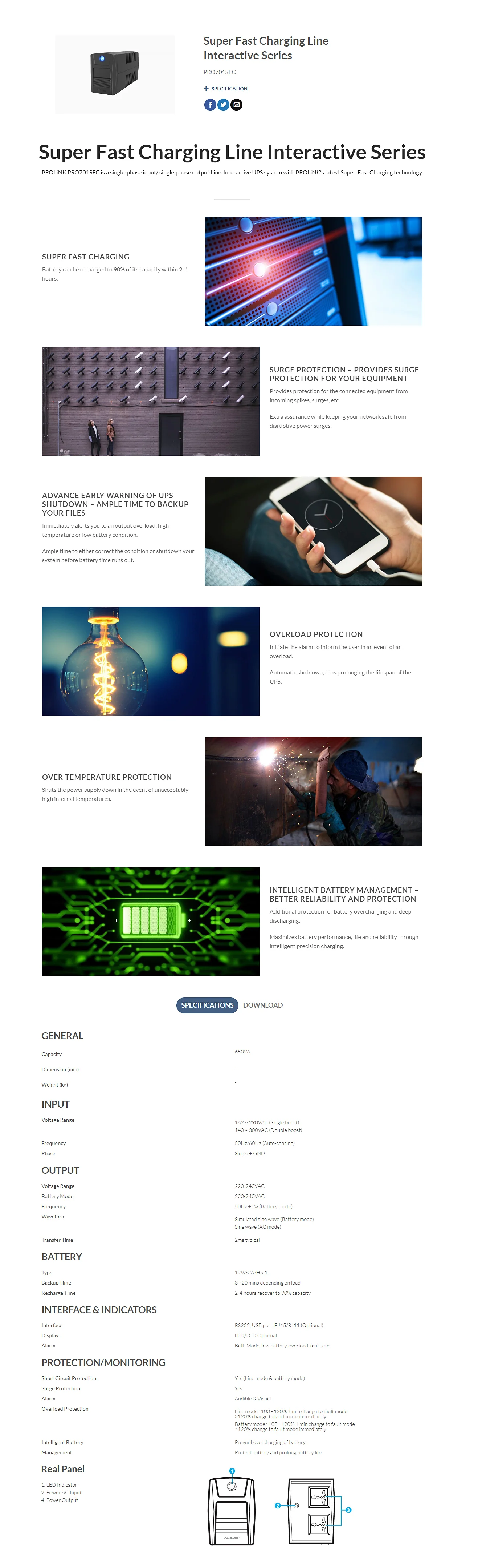 Prolink - PRO701SFC 650VA UPS